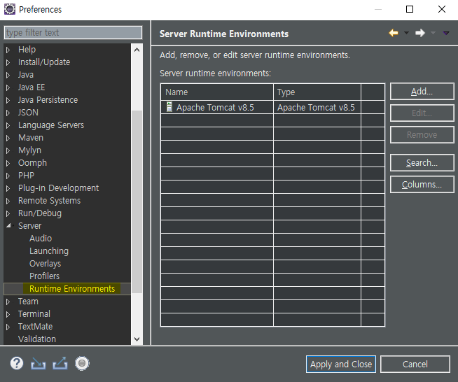2️⃣ Server > Runtime Environments 클릭 후 Add...