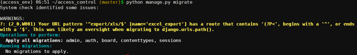👉 나의 경우 엑셀파일 export 기능을 위해 xlsxwriter 모듈을 설치하고 마이그레이션을 진행했음