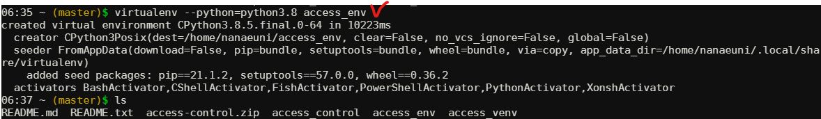 👉 ls 명령어를 통해 생성된 가상환경 확인 가능