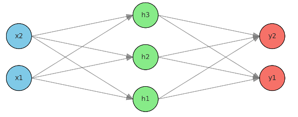 맨 왼쪽 줄(0층)을 입력층, 중간 줄(1층)을 은닉층, 맨 오른쪽 줄(2층)을 출력층이라고 함.